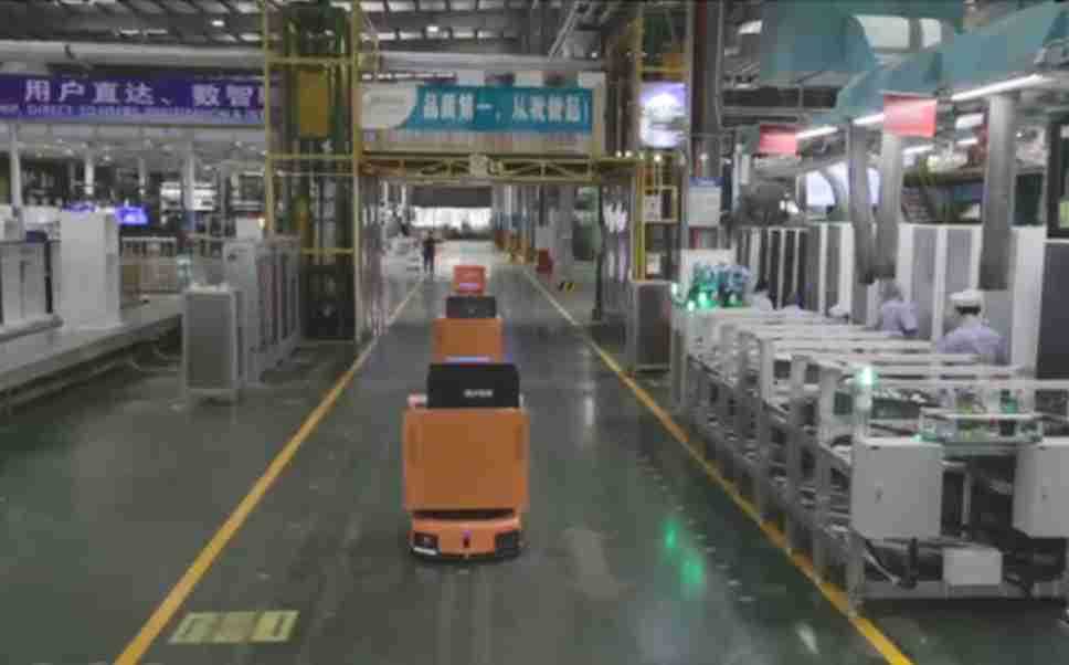为车载冰箱物流配送打造的智能解决方案,,,包含产中物流通过潜伏举升AMR搬运至线边,,,产后成品物流智能仓储,,,流程包含产中物流智能齐套入库,,,,线边安灯叫料AMR智能配送至线边,,,成品入库、、、出库,,通过无人堆高车机器人,,智能仓储管理替代人工作业管理,,,,实现更高存储、、、更高效率、、、更具柔性化的解决方案。。。