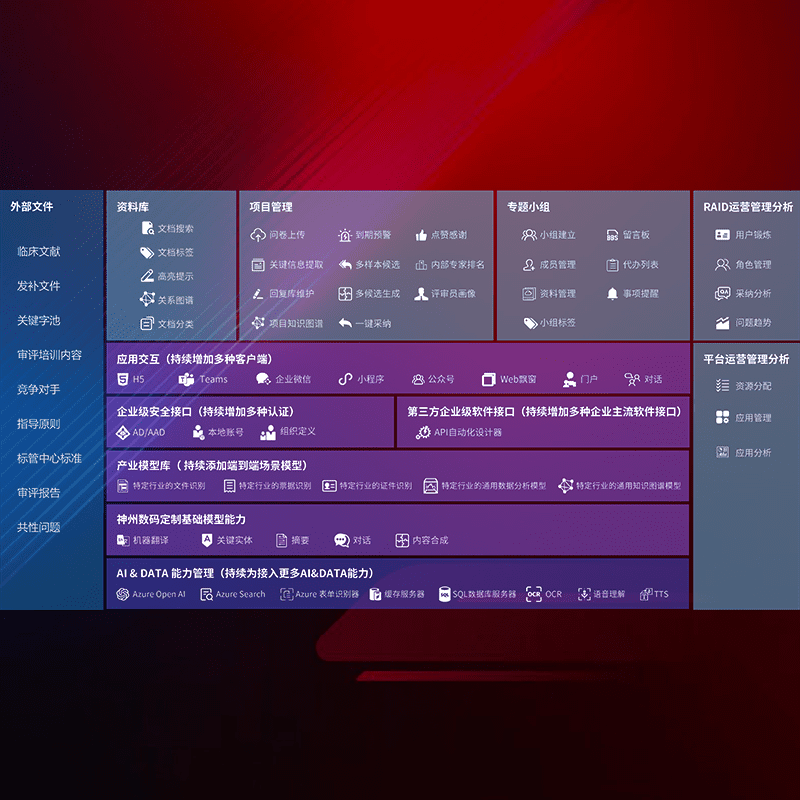 医疗器械产品上市前,,,,要熟悉严格与繁复评审标准,,,整理分析监管机构指导文件中的海量信息。。。。企业急需一个智能化解决方案,,提升知识管理效率,,提高评审通过率,,,以提升其市场竞争力。。。